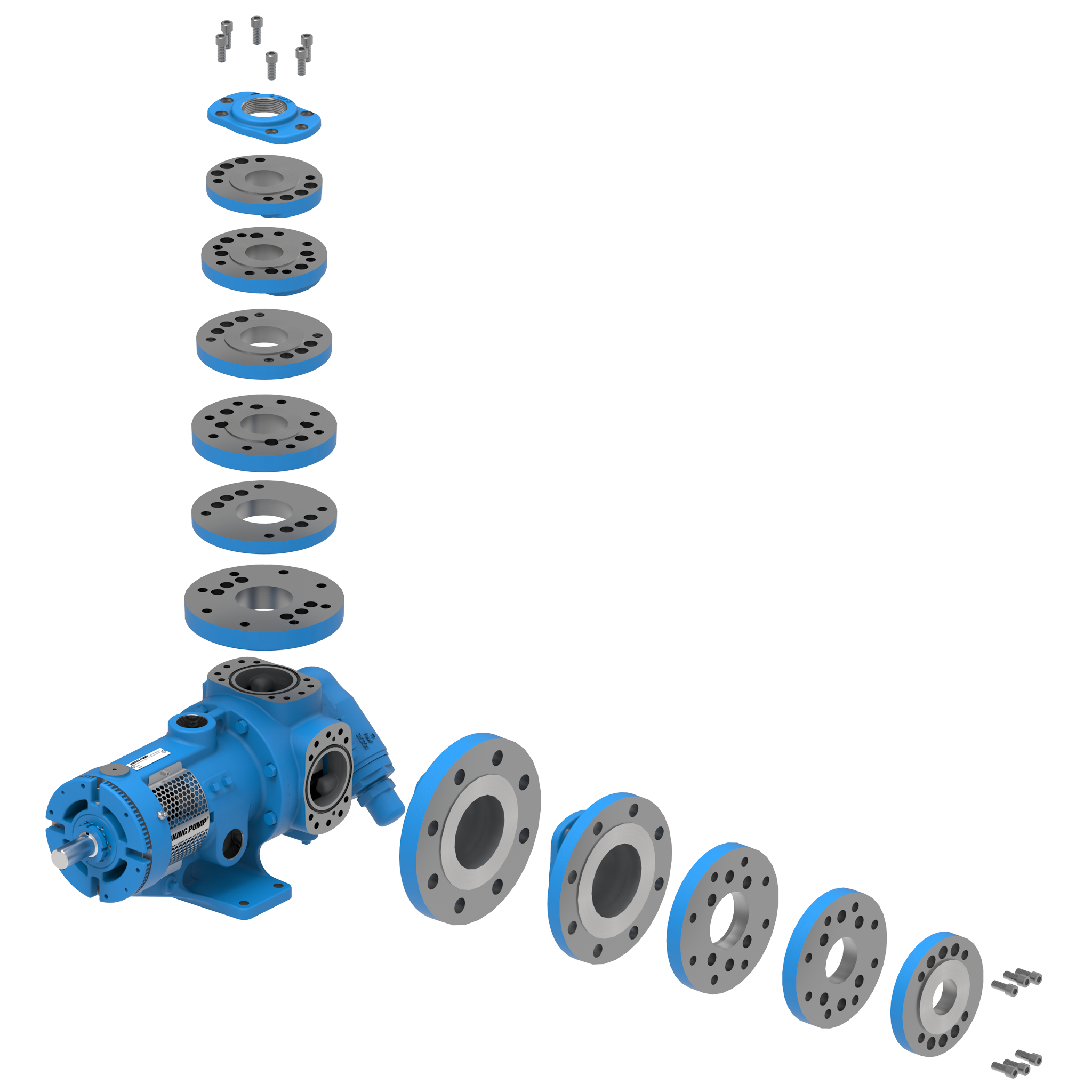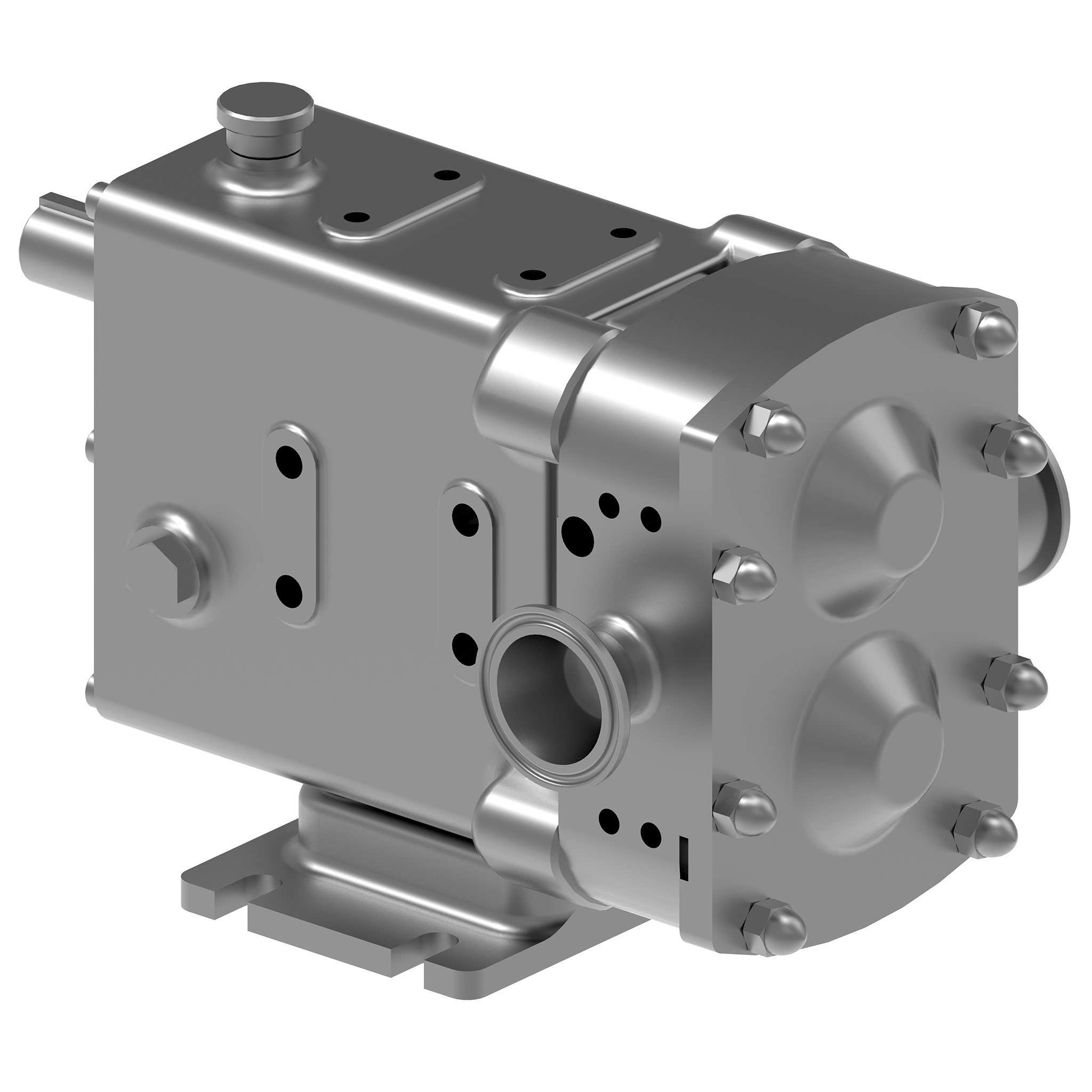 • La carcasa ProPort™ utiliza almohadillas de montaje en cada puerto diseñadas para adaptarse a una variedad de tipos y tamaños de bridas diferentes, lo que permite flexibilidad al conectar las bombas a las tuberías