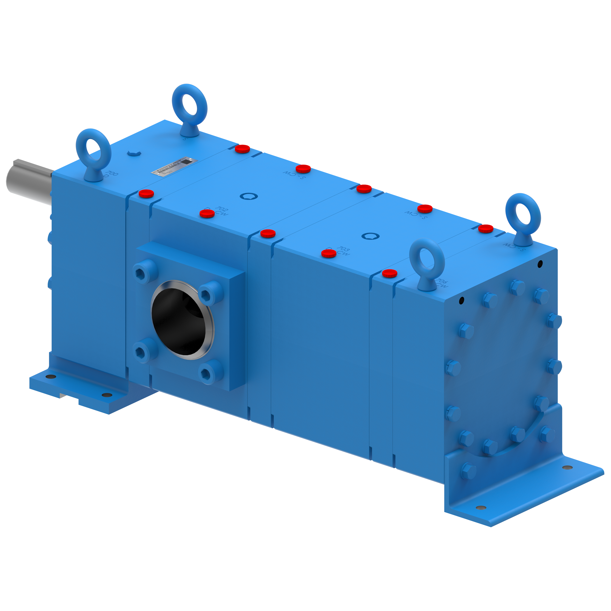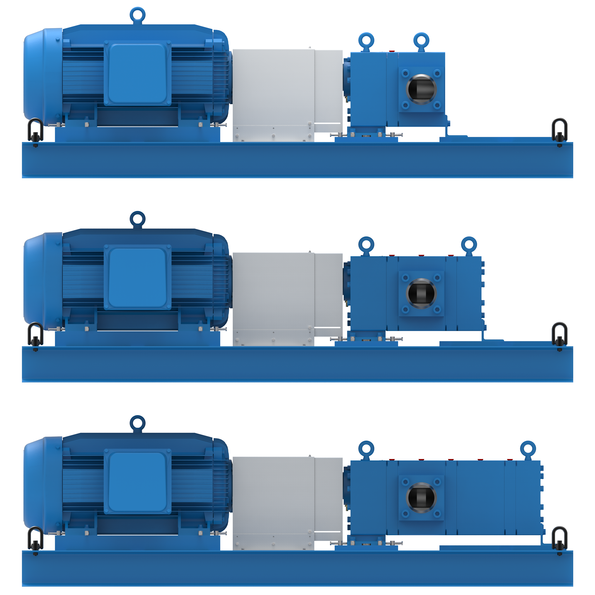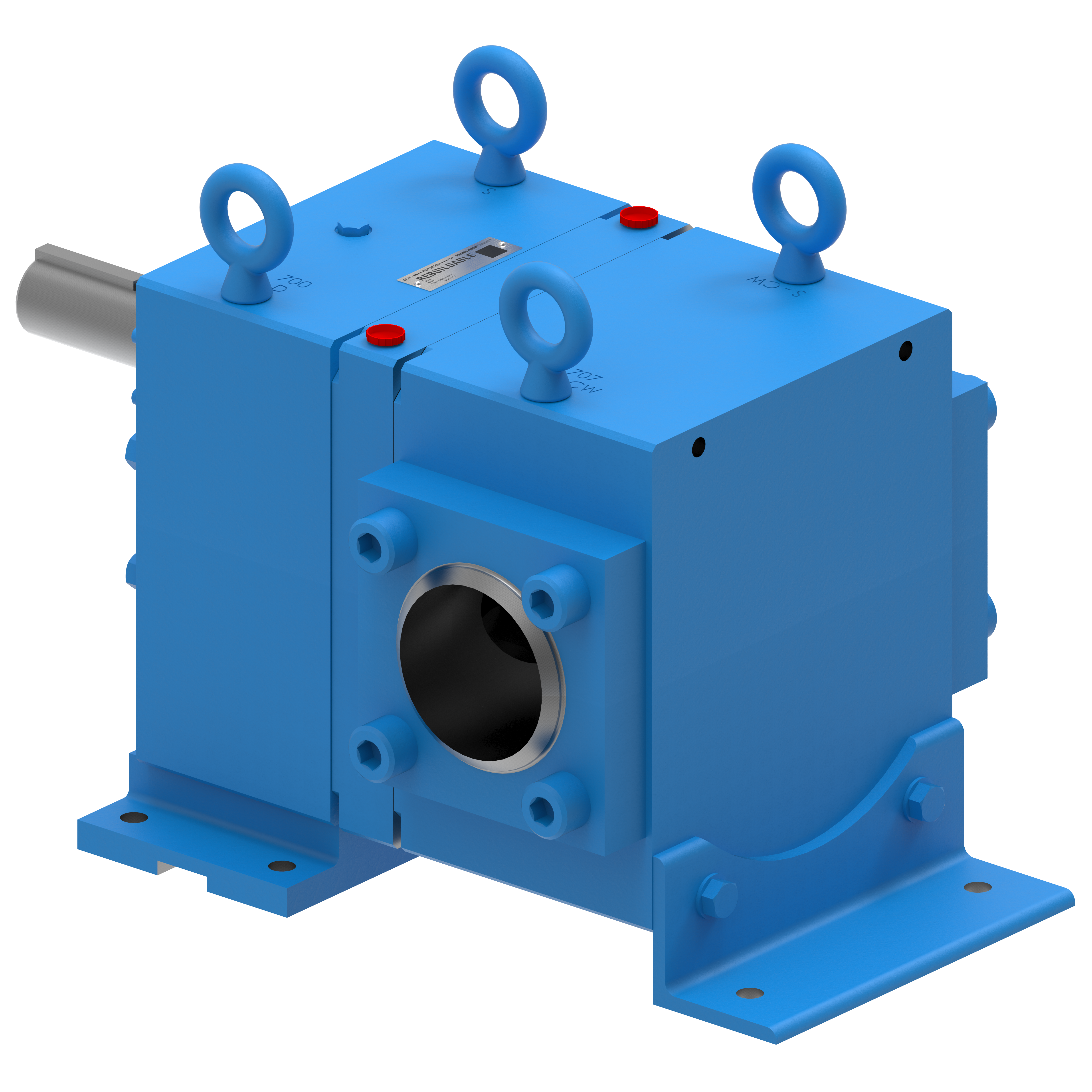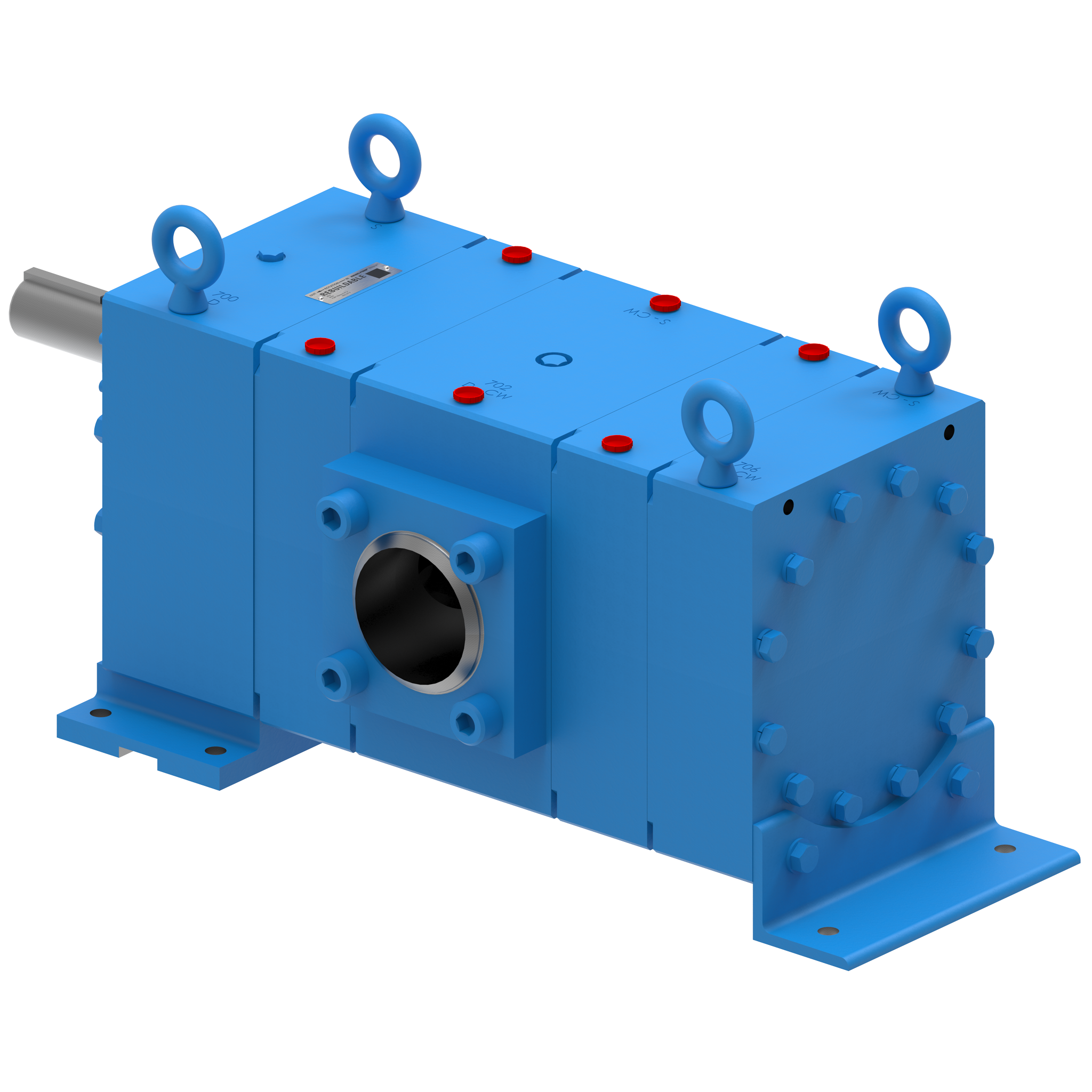 - Base rígida de acero estructural con almohadillas de montaje fresadas y pernos de elevación para facilitar la alineación in situ.